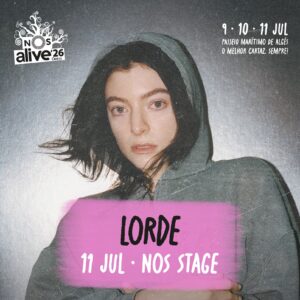 O NOS Alive continua a reforçar um cartaz de luxo para a edição de 2026. Lorde é a mais recente confirmação para o Palco NOS, atuando no dia 11 de julho, no Passeio Marítimo de Algés.