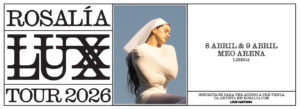 Rosalía está prestes a dar o passo mais ambicioso da sua carreira. A artista espanhola anunciou a LUX TOUR 2026 com duas datas consecutivas na MEO Arena, em Lisboa, nos dias 8 e 9 de abril de 2026. Uma digressão mundial que a vai levar a arenas da Europa, América do Norte, América do Sul e México, num total de 42 concertos em 17 países, naquela que será a sua maior aventura em palco até agora.