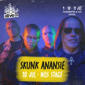 Os Skunk Anansie estão de volta a Portugal e trazem consigo toda a energia que os tornou num dos nomes mais marcantes do rock dos anos 90 e 2000. A banda britânica sobe ao Palco NOS no dia 10 de julho, no NOS Alive 2026, para um concerto que promete ser uma autêntica descarga de atitude, força e emoção.